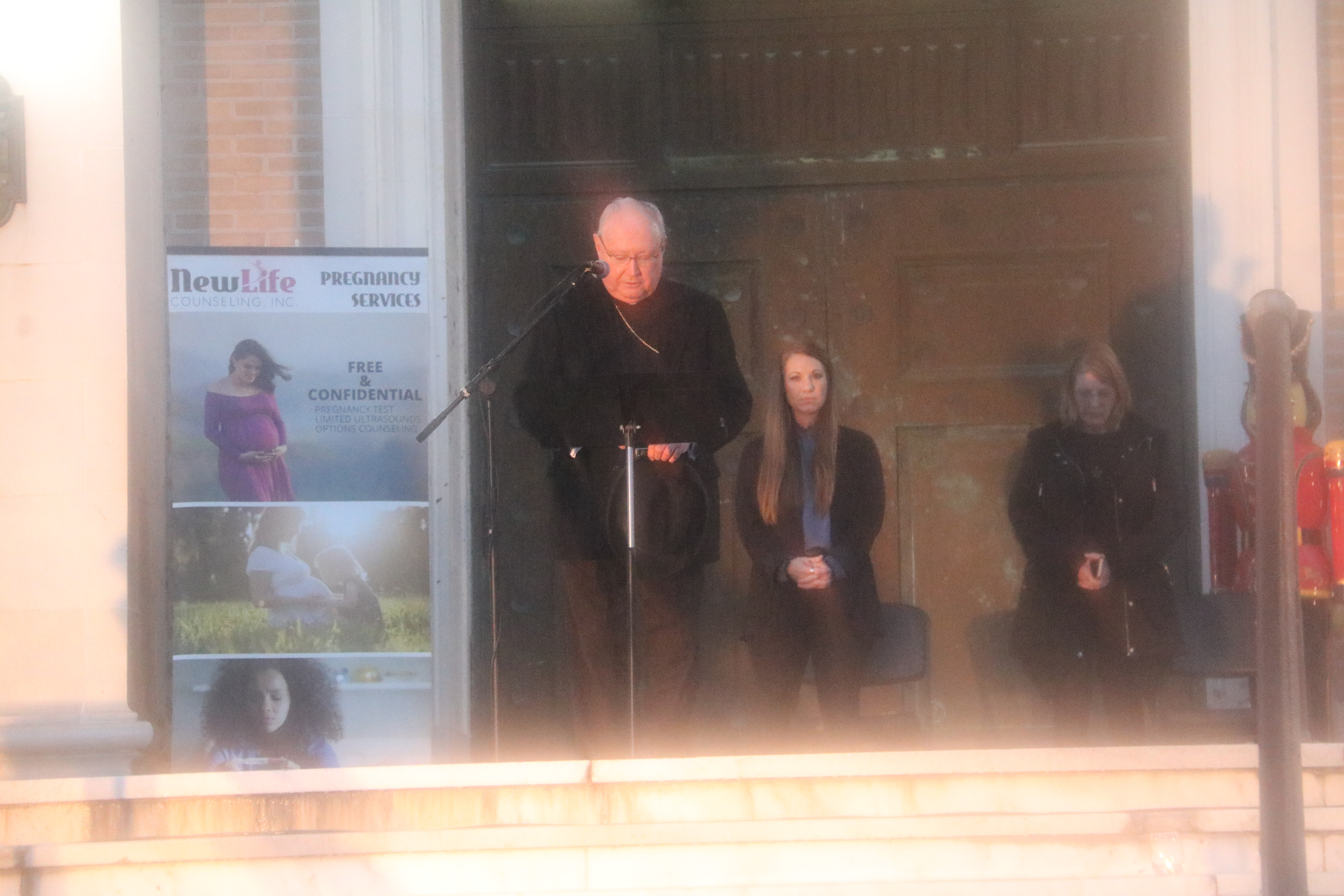 The 25th annual candlelight memorial prayer vigil, hosted by New Life Counseling, coincided with the 48th anniversary of the U.S. Supreme Court’s decision legalizing abortion in the United States. The event took place on the front steps of the Calcasieu Parish Courthouse with more than 100 in attendance, despite the gloomy weather.