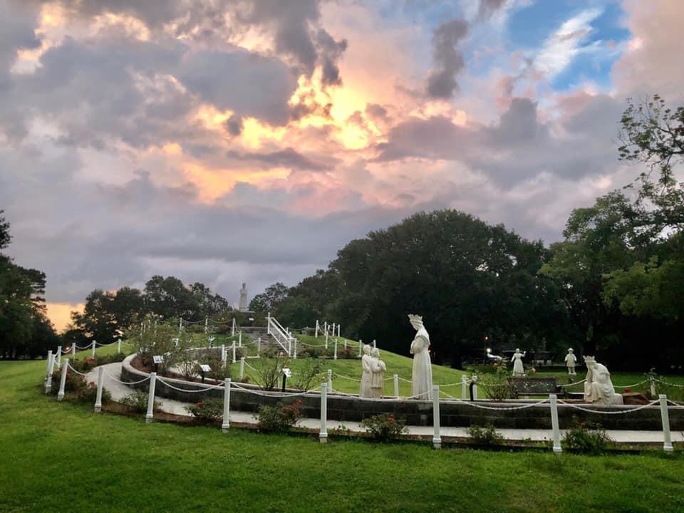 Because of Father Kollannoor’s great love for Our Lady, he directed parishioners to build an exact replica of the LaSalette Shrine. Construction began in 2016 with 250 loads of dirt brought in to replicate the Holy Mountain on which Our Lady of LaSalette appeared. Seven life-size Carrara marble statues, donated by Missionaries of LaSalette, were installed. The solemn blessing and dedication took place on Sept. 22, 2018, with Bishop Provost and Father Rene Butler, M.S., Provincial Superior, Missionaries of LaSalette, Mary, Mother of the Americas Province.