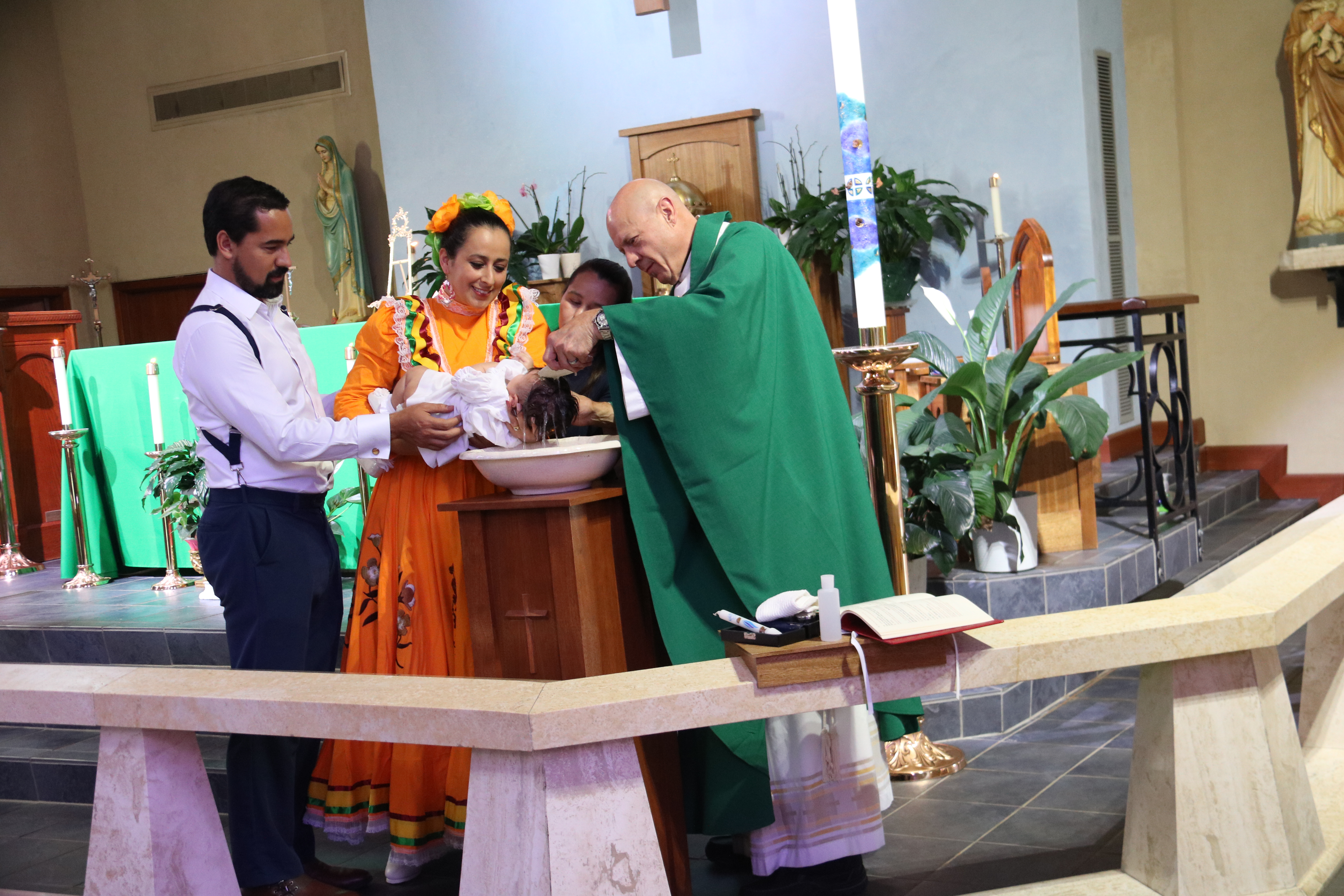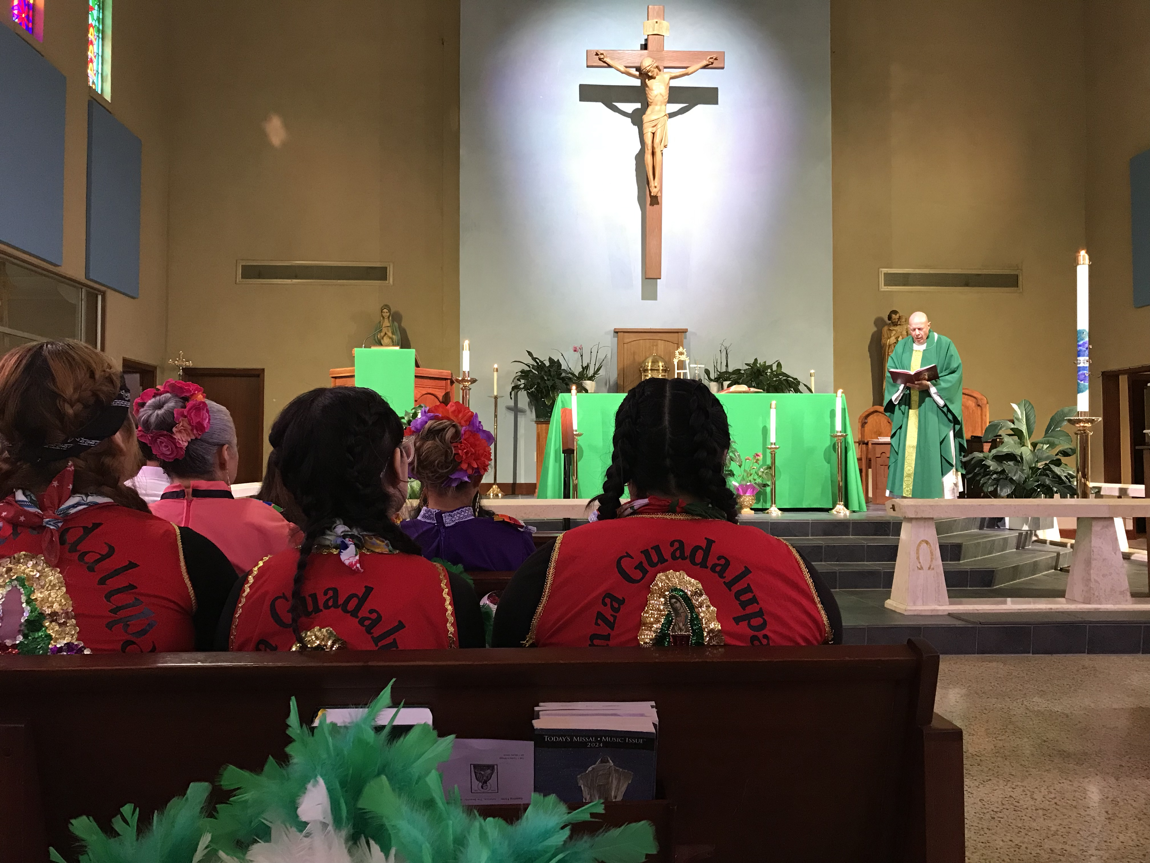 Following the Mass, the Guadulapana Dancers led everyone to a fiesta in the church hall featuring Latino food, St. Henry Folkloric Ballet, live music, and an evangelization drama.