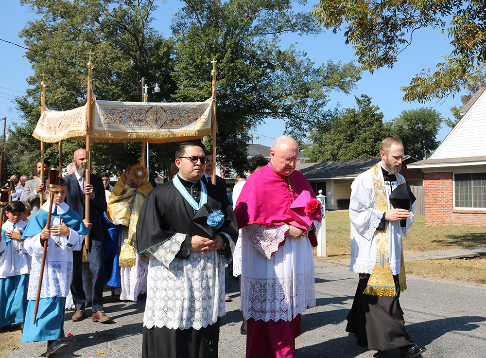 in a Eucharistic Procession throughout the streets of Sulphur.