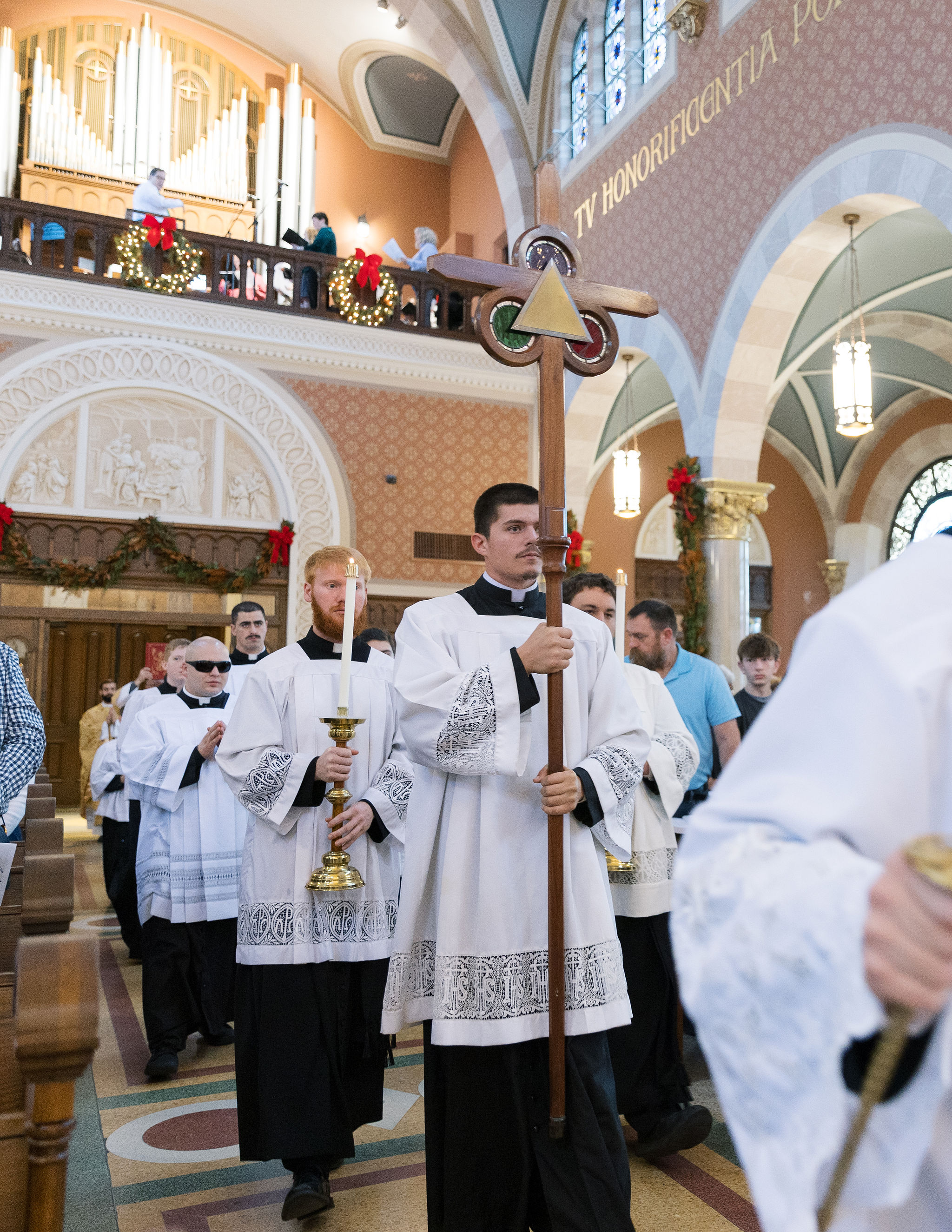 Moments before the opening Mass at 9:30 a.m. in the Cathedral of the Immaculate Conception, Bishop Provost celebrated the Rite of Opening for the Jubilee Year in the Ave Maria Hall surrounded by several clergy and the seminarians.