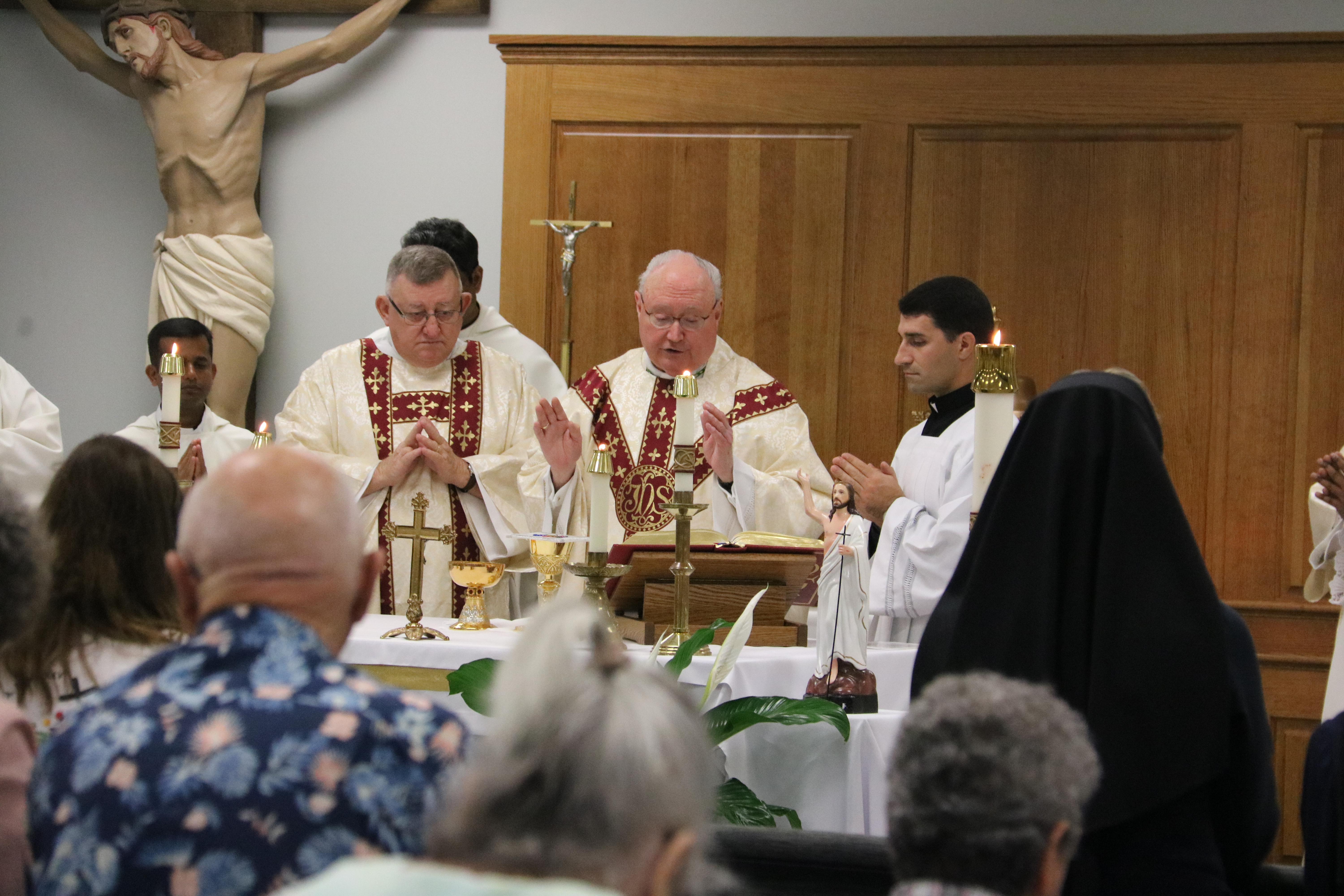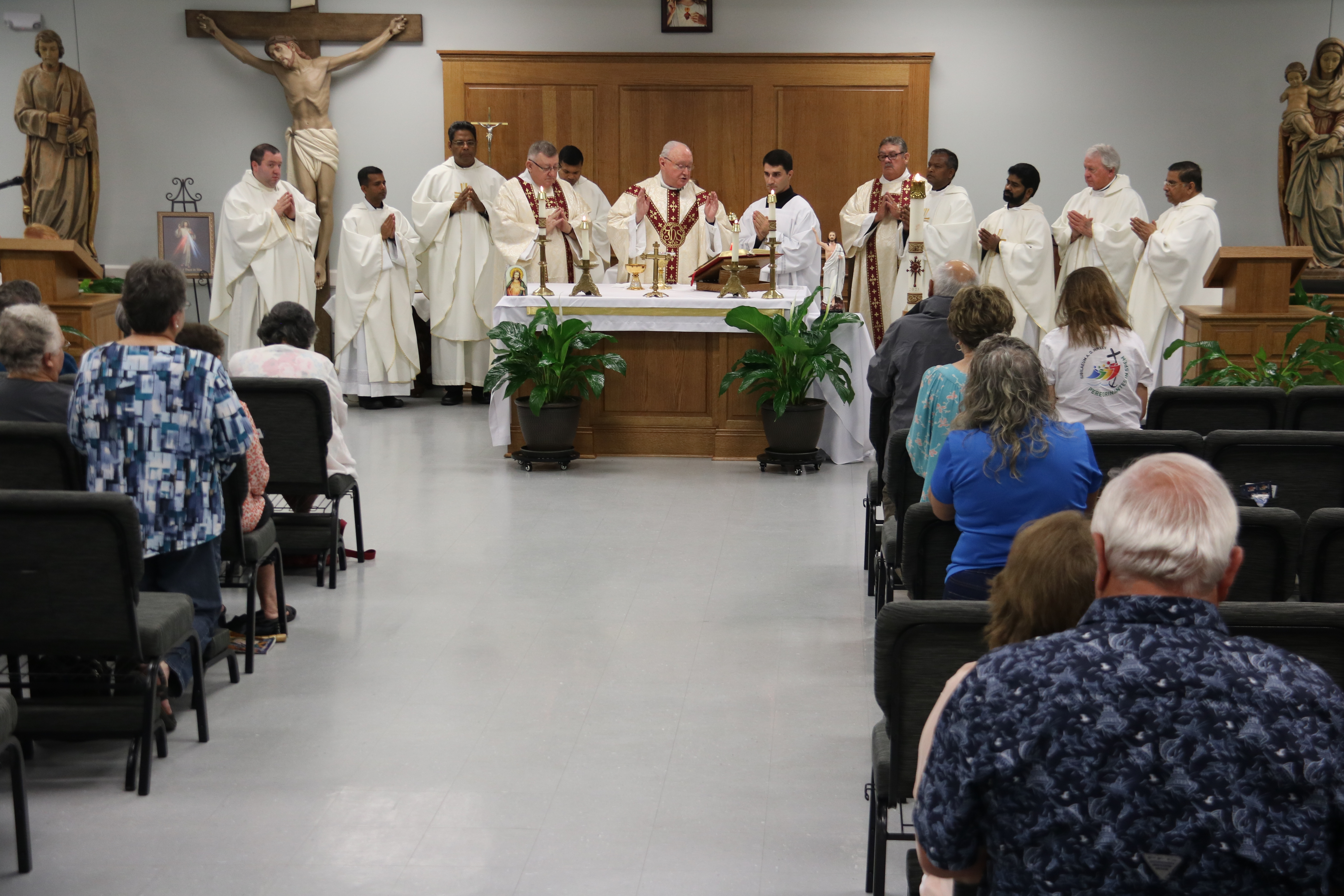 Concelebrants of the Mass with Bishop Provost were Rev. Jerish George, M.O.C.; Rev. Monsignor James Gaddy; Very Rev. Matthew Cormier, V.F.; Very Rev. Raju Mathew Panackal, M.O.C., J.V.; Rev. Arvind Minz, H.G.N.; Rev. Paul D’Sa, M.O.C.; Rev. Anil Alexander, M.O.C.; and Rev. Prabhakar Kowtiki, M.O.C.