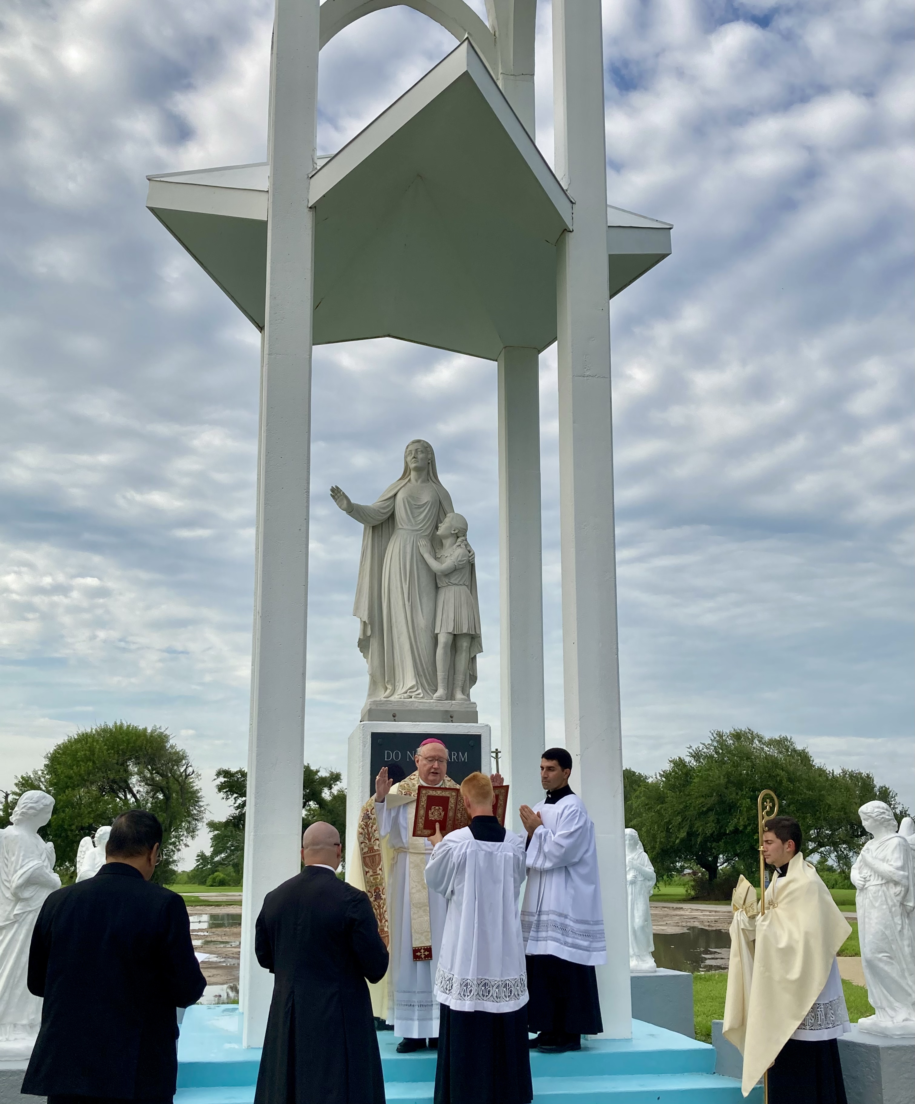 At the Historic Shrine of Our Lady Star of the Sea, which was left miraculously unscathed from Hurricane Laura in 2020, Bishop Provost led those gathered in praying the Litany of the Blessed Virgin Mary of Loreto before he sprinkled everyone with holy water.
