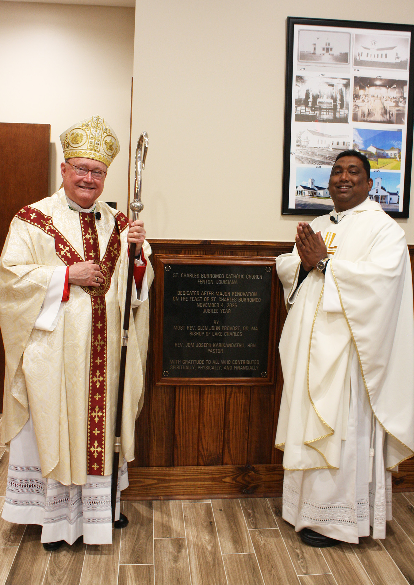 FENTON –– After 11 months of extensive renovations, the Most Reverend Glen John Provost, Bishop of Lake Charles, dedicated St. Charles Borromeo Catholic Church on Tuesday, November 4, the Feast day of the church’s patron saint.