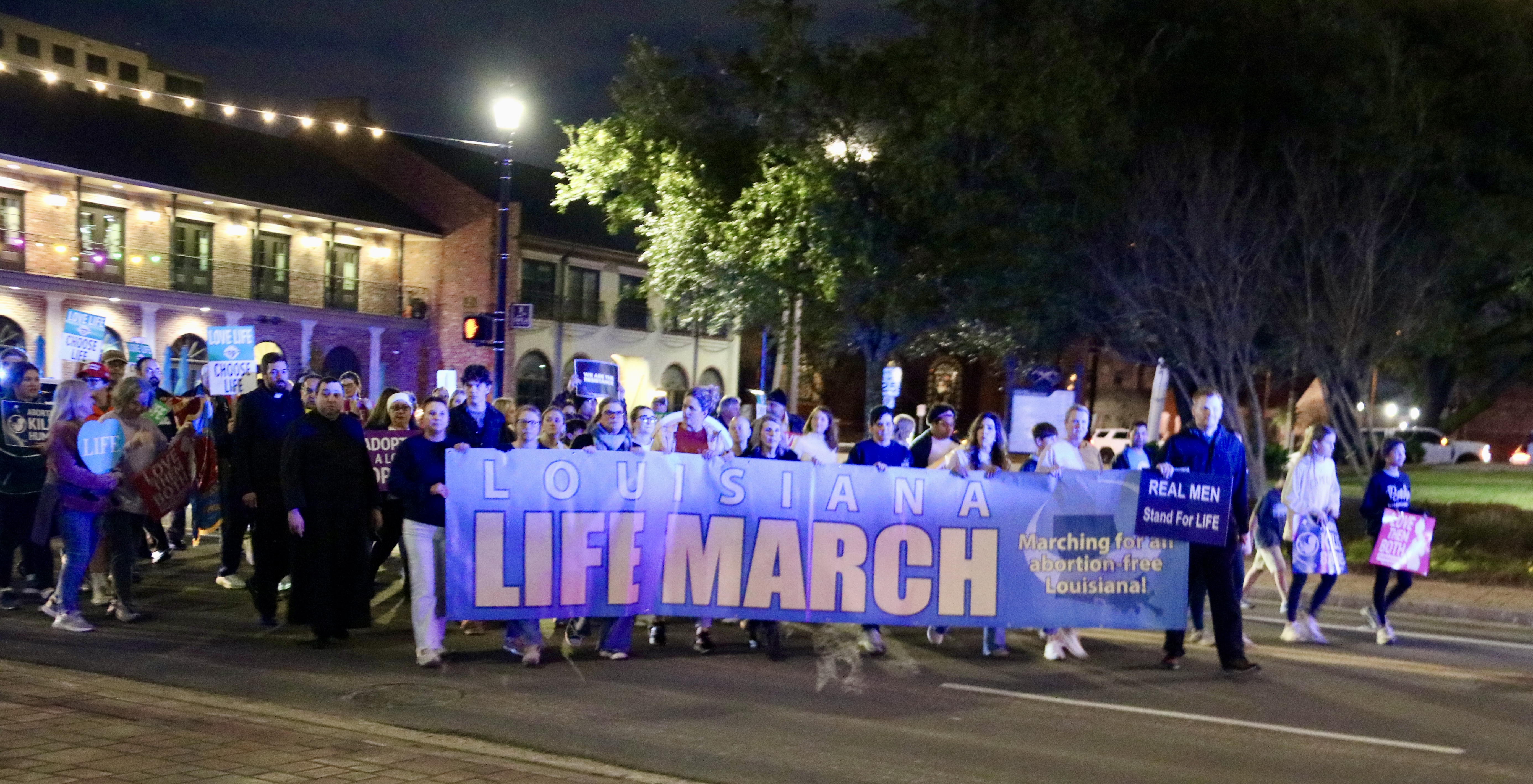 This year’s march made its way from the Veterans’ Memorial Park at the Lake Charles Civic Center to the Calcasieu Parish Courthouse steps for a candlelight prayer vigil. It is sponsored by Louisiana Right to Life, New Life Counseling Pregnancy Center, ABC Pregnancy Center, Louisiana Baptist Convention, Louisiana Conference of Catholic Bishops, United Pentecostal Church of Louisiana, Louisiana Family Forum, the Knights of Columbus, and Concerned Women for America.